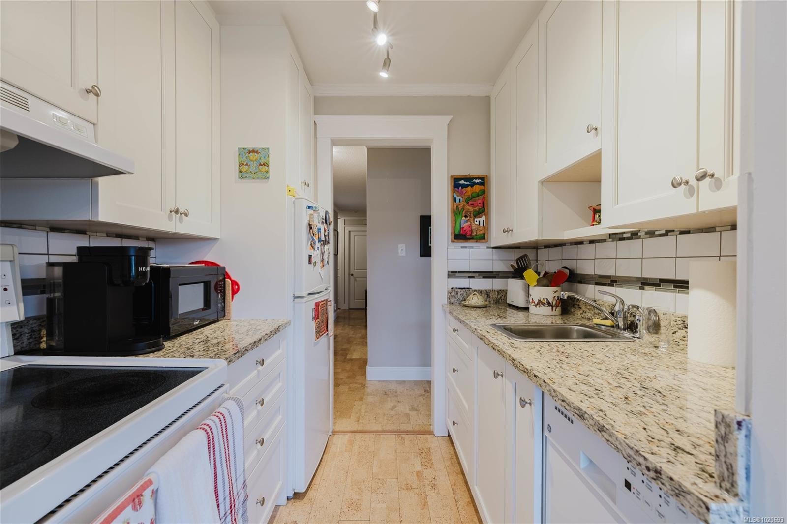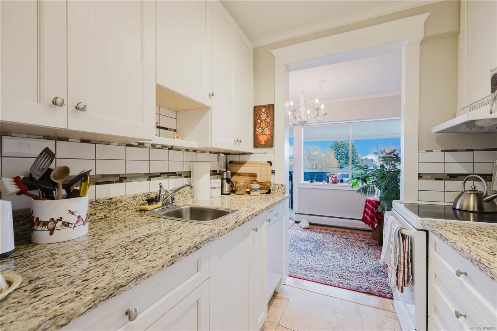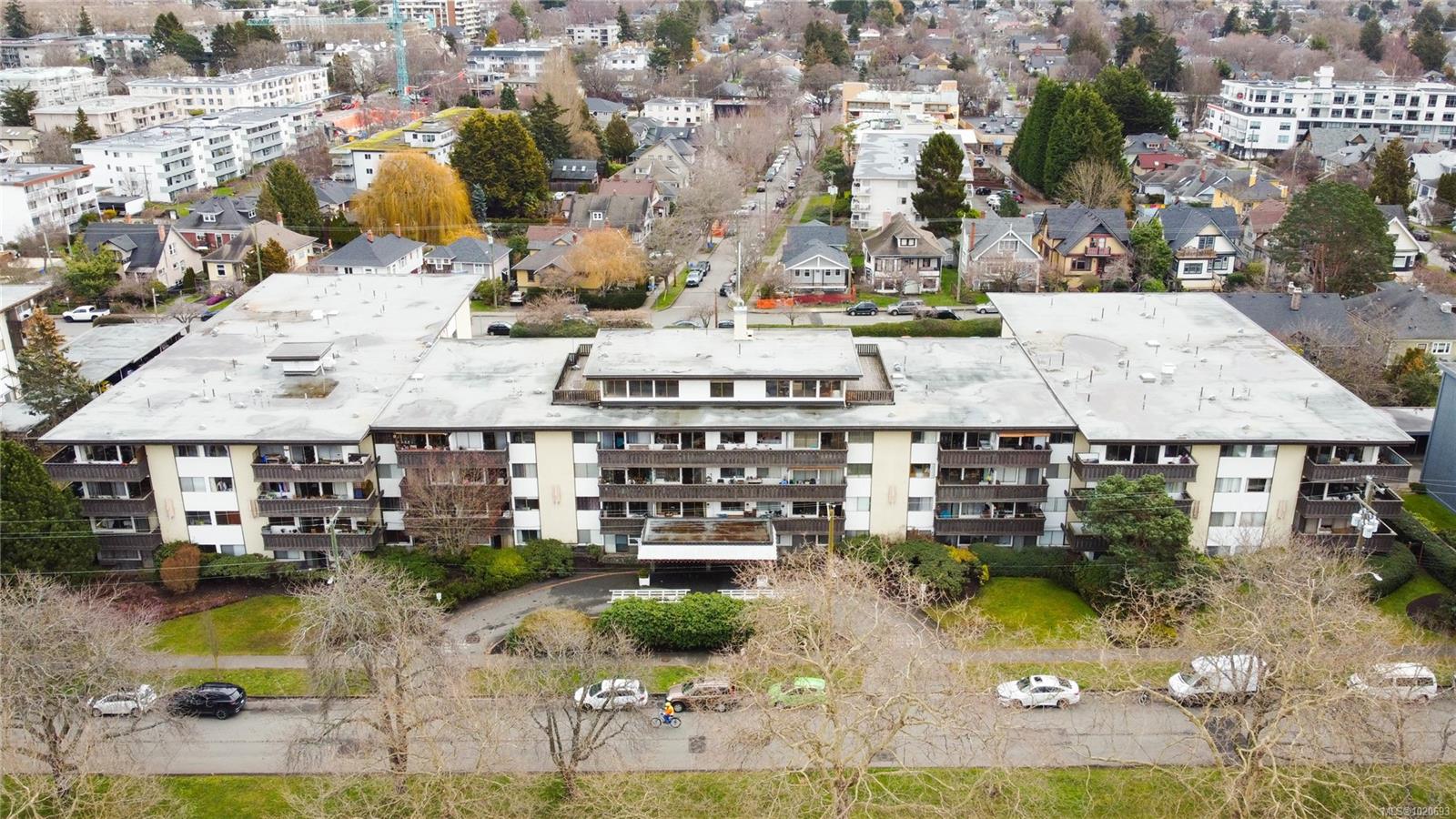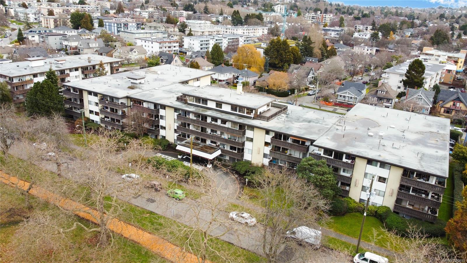 Discover this stunning, newly renovated 877 sqft, 2-bedroom condo nestled in the vibrant heart of Fairfield, directly across from the iconic Beacon Hill Park. Just a short stroll from the charming Cook Street Village, the scenic Dallas Road waterfront, Inner Harbour, and downtown Victoria, this home boasts one of the most sought-after locations in the city. The spacious living room and adjacent dining area feature beautiful oak floors that run throughout the home, complemented by an abundance of sunlight streaming through large picture windows. Step through the patio doors onto a generous balcony—ideal for sipping your morning coffee or unwinding with a book while soaking in the lively Fairfield atmosphere. The modern kitchen shines with raised panel cabinets, granite countertops, a stainless steel sink, and a stylish tiled backsplash. The bright master bedroom and sizable second bedroom, both with large windows and ample closet space, are conveniently located off the main hallway. A sleek 4-piece bathroom completes the interior with a granite vanity and undermount sink. This well-maintained, professionally managed building offers fantastic amenities, including a rooftop lounge, swirl pool, sauna, workshop, bike storage, and separate storage space. Don’t miss out on this exceptional find! Lease expires Dec 2073. Monthly fee includes property taxes, heat, hot water, etc.